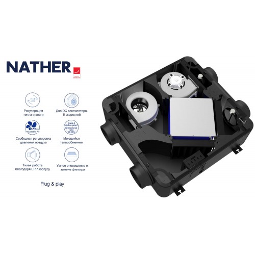 - Интеллектуальное управление — цветной контроллер, фирменный сенсор 5-в-1 и мобильное приложение NATHER APP обеспечивают полный контроль над микроклиматом, где бы вы ни находились.